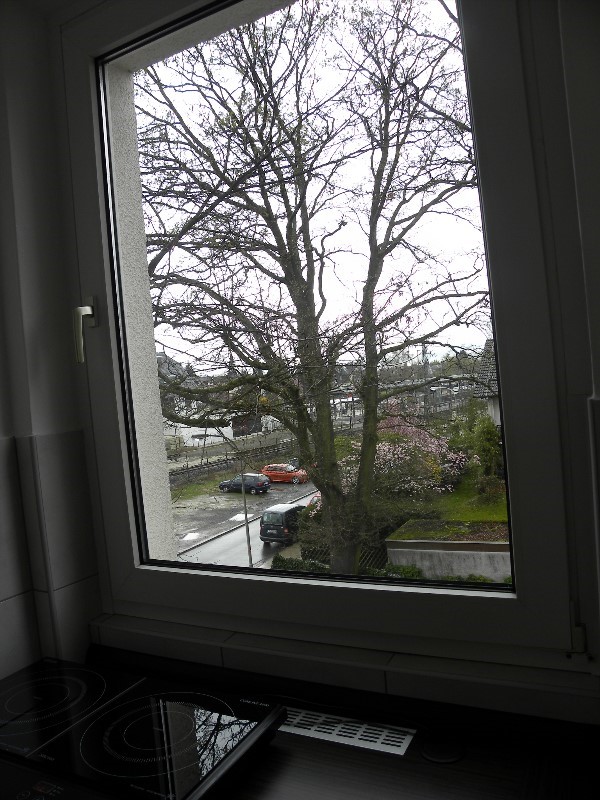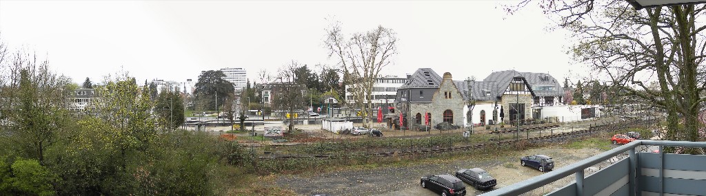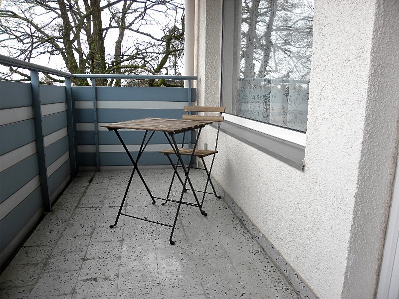 Sehr großer Privater Balkon inkl. Stuhl und Tisch mit Blick auf den Taunus und den Bahnhof.