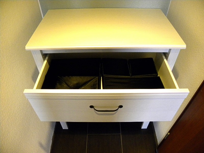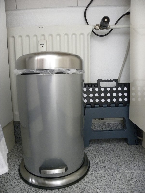 Große Box auf dem Bakon für Stabsauger und andere Reinigungsutensilien. Kellerraum.